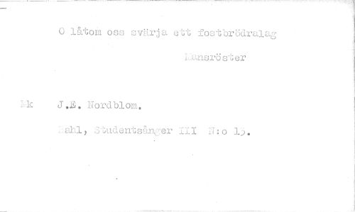 //// 0 låtom oss svärja elA fostbrödralac //// "Lansröster //// Ik J,, Nordblom. //// _ahl, S'cudentsgln::er LI IT:o 19. ////