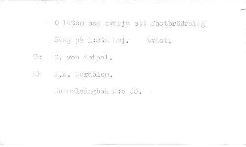 //// 0 låtom oss svErja ett fostbrödralag //// Sång på 1:sta 'Laj. tvåst. //// Tx 0. von Zeipel. //// Lic ., Nordblow, //// Hormalsängbok :d:o JO. ////