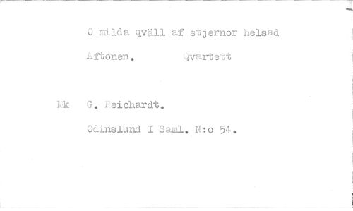 //// 0 milda väll af stjernor helsad //// Aftonen. Qvart //// kk G. iieichardt. //// Odinslund 1 Sami. N:o 54. ////