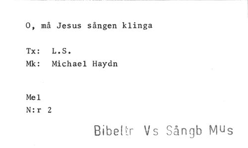 //// 0, må Jesus sången klinga //// Tx: L.S. //// Mk: Michael Haydn //// Mel N:r 2 //// Bibeitr Vs Sångb Mus ////