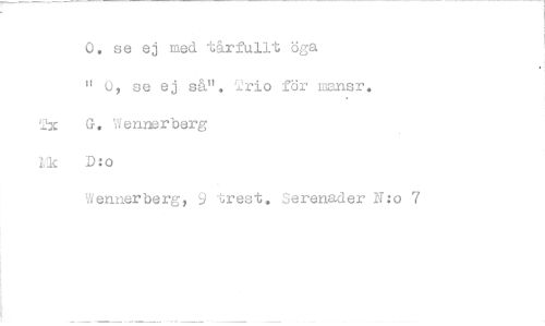 //// 0. se ej med tårfUllt öga //// " 0, se ej så". r2rio för maner. //// G. Wennerberg //// Lk D:o //// Wennerberg, 9 'rest. Serenader N:o 7 ////