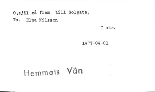 //// 0,själ gå fram till Golgata, Tx. Elna Nilsson //// 7 str. //// 1977-09-01 //// Hemmets Vän ////