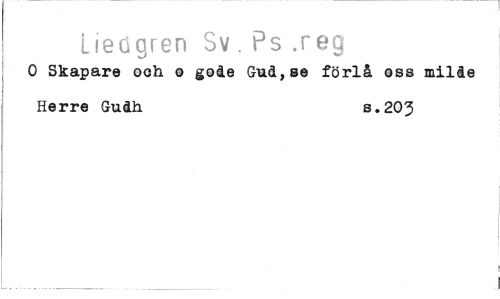 //// Liedgren Sv . Ps .reg //// 0 Skapare och o gode Gud,se förlå oss milde //// Herre Gudh s.203 ////