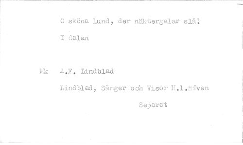//// 0 sköna lund, der näktergalar slå: //// I dalen //// kk A.F. //// Lindblad //// Lindblad, Sånger och Visor H.1.fven //// Separat ////