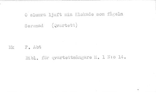 //// 0 slumra ljuft min älskade som fågeln Serenad (Qvartett) //// P. Abt //// Bibi. för qvartettsångare if. 1 N:o 14. ////