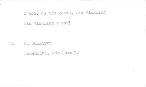 //// 0 sof, du min gosse, min älskling Lin älskling o sof! //// Pk A• Sullivan //// hedenblad, lniraibum 3. ////