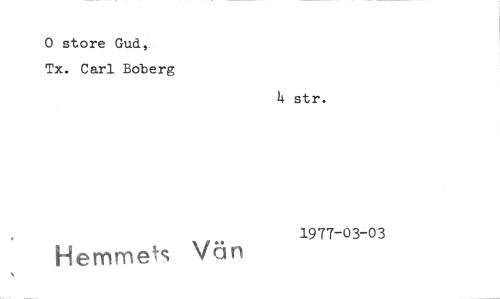 //// 0 store Gud,. Tx. Carl Boberg //// 14 str. //// Hemmets Vän 1977-03-03 ////