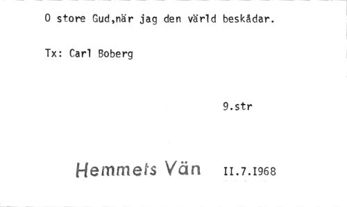 //// 0 store Gud,när jag den värld beskådar. //// Tx: Carl Boberg //// 9.str //// Hemmets Vän 11.7.1968 ////