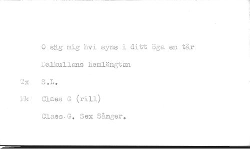 //// 0 säg mig hvi syns i ditt öga en tår //// Dalkullans hemlängtan //// Tx S.L. //// Lk Claes G rill) //// Claes-G. Sex Sånger. ////