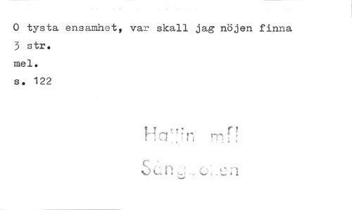 //// o tysta ensamhet, var skall jag nöjen finna 3 str. //// mel. //// s. 122 //// 1.._J • //// r ;CL; n ////