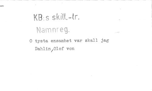 //// KB:s skit(.-tr. //// Namnreg. //// 0 tysta ensamhet var skall jag Dahlin Olof von ////