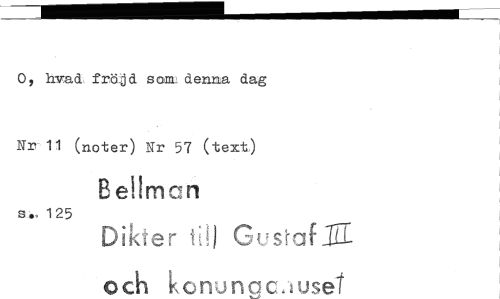 //// Itmad. trdijd som denna dag //// Nr ii (noter) Nr 57 (text) //// Bellm n //// so, 125 //// Dikter Gustaf5. //// och kenunac;wsel ////