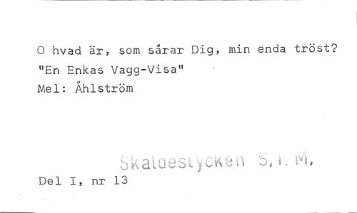 //// 0 hvad är, som sårar Dig, min enda tröst? "En Enkas Vagg-Visa" //// Mel: Åhlström //// S atues'i 1 å, //// Del I, nr 13 ////