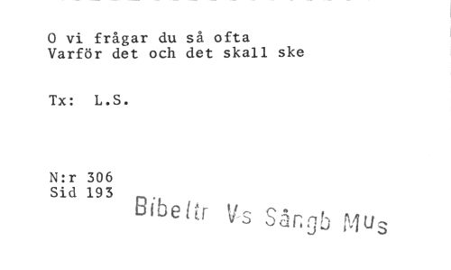 //// 0 vi frågar du så ofta Varför det och det skall ske //// Tx: L.S. r Vs Sångb Mus //// N:r 306 //// Sid 193 //// Bibel ////