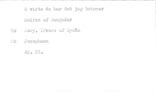 //// 0 viste du hur ömt jag brinner lAiren af Bengador //// Tx Lery, (ivers af äyd4n Josephson //// Op. 2 . ////