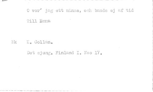 //// 0 vor' jag ett minne, och bands ej af tid Till Emma //// kk K. Collan. //// Det sjung! inland 1. N:o 17. ////