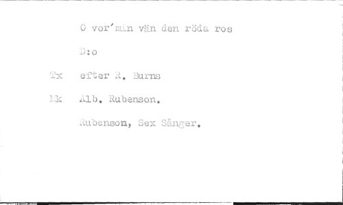 //// 0 vor'nlln vän den röda ros D:o //// efter A. Burns //// Ik 1b. itubenson. //// .;:.ubensoray Sex Sånger. ////