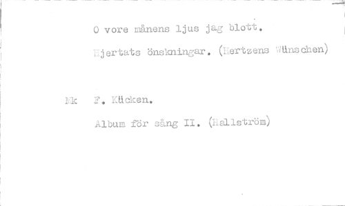 //// o vore månens ljus j e, blott. //// Ejertats önskningar. (Lertzens Ainsähen //// Uc 2, Kneken. //// Album för sång II. (iA311ström) ////