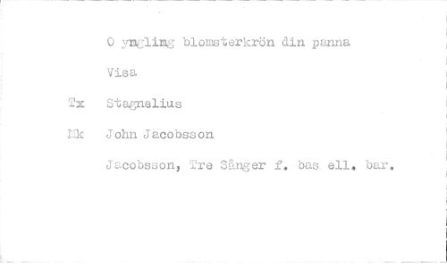 //// 0 yngling blomsterkrön din panna //// Visa //// Stagnelius //// Ek John Jacobsson //// Jacobsson, Tre Sånger f. bas sil. bar. ////