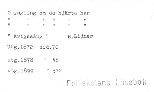 //// 0 yngling om du hjärta har //// it IT !I IT It //// T/ It tt tt tt //// " Krigssång " B.141.dner //// Utg.1872 sid.70 //// utg.1878 tt 48 //// utg.1899 572 ////