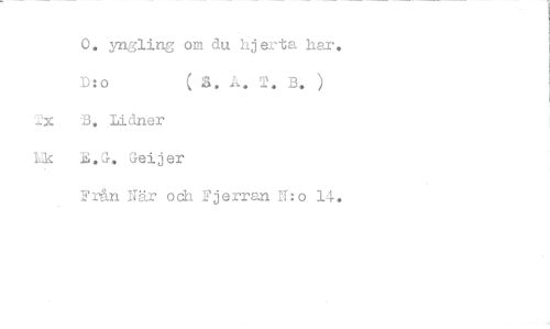 //// 0. yngling om du hjerta har. //// D:o ( 3. A. T. B, ) //// Tx B. Lidner //// Lik B.G. Geijer //// Från När och Fjerran N:o 14. ////