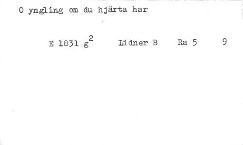 //// 0 yngling om du hjärta har //// E 1831 g2 Lidner B Ra 5 9 ////