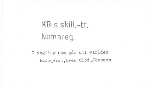 //// KB:s skilt.-tr. //// Namnreg. //// 0 yngling som går uti världen Palmqvist,Sven Olof,Jönsson ////