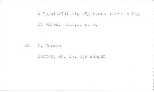 //// 0 äppelträd: Lig säg hvart står din håg Om våren. S.A.T. 0. B. //// 1,1r. Z. Norman //// Norman, Op. 15. Sju sånger ////