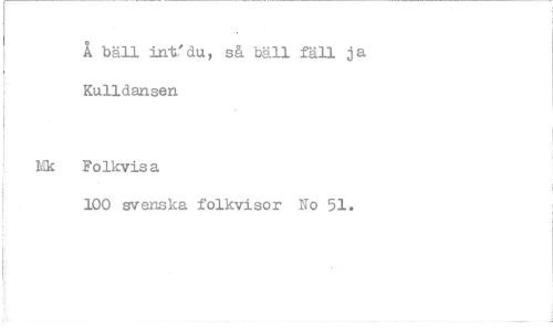 //// Å bäll intl du så bäll fäll j a Kulldansen //// Folkvisa //// 100 svenska folkvisor No 51. ////