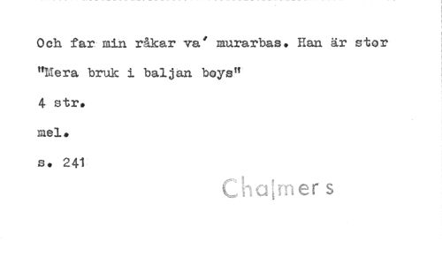 //// Och far min råkar va° murarbas. Han är stor //// "Mera bruk i baljan boye" //// 4 str. //// mel. //// s. 241 //// ,[2 rrler s ////