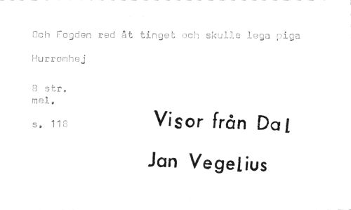 //// Och Fogden red åt tinget och skulle lega piga Hurromhej //// 8 str, mel. //// s. 118 Visor från Da i //// Jan Vegelius ////