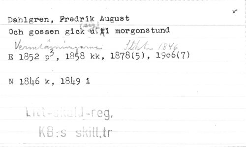 //// Dahlgren, Fredrik August //// Och gossen gick ui morgonstund //// E 1852 p3, 1968 kk, 1878(5), 1906(7) N 1846 k, 1849 i //// If ////