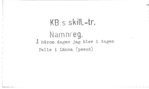 //// KB: s skilt,-tr. //// Namnreg. //// Å härom dagen jag blev i tagen Pelle i Länna (pseud) ////