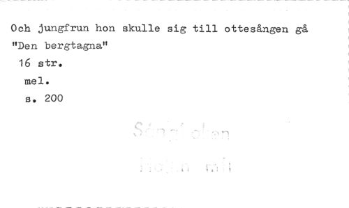 //// Och jungfrun hon skulle sig till ottesången gå //// "Den bergtagna" //// 16 str. //// mel. //// s. 200 ////