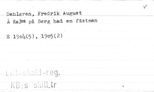 //// Dahlgren, Fredrik August //// Å Kajggt på Berg had en fästman //// E 19o4(5), 19o5(2) //// V //// — H:s slidtt tr ////