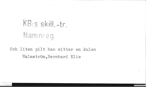 //// KB:s skilt. -tr. //// Namnreg //// Och liten pilt han sitter en kulen Mälmström,Bernhard Elis ////