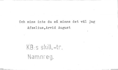 //// Och mins inte du så minns det väl jag Afzelius,Arvid August //// B:s skött.-tr, //// Namnreg. ////