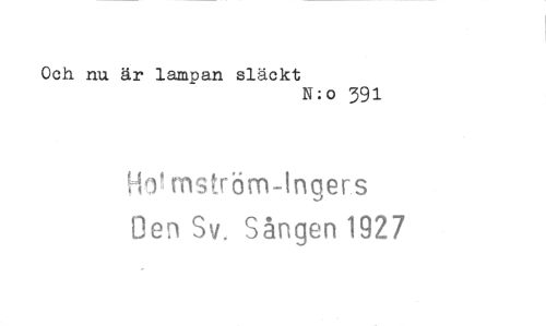 //// Och nu är lampan släckt //// 11:o 391 //// inström-Ingers //// Oen Sv. Sången 1927 ////