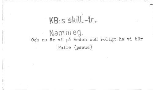 //// KB: s skilt.-tr. //// Namnreg. //// Och nu är vi på heden och roligt ha vi här Pelle f‘pseud) ////