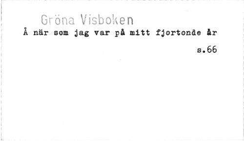 //// Gröna Visboken //// Å när som jag var på mitt fjortonde år //// s.66 ////