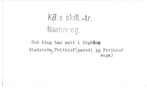 //// KB: s skill.-tr. //// Namnreg. //// Och Ring han satt i högbånk //// Gladström Frithiof(parodi pg Frithiof //// saga) ////