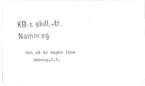 //// KB: s skilt,-tr. //// Namnreg. //// Och så är dagen Inne Omberg,H.P. ////