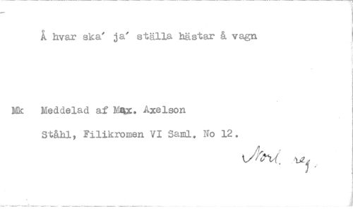 //// Å livar ska' ja° ställa hästar å vagn //// Mk Meddelad af M4x. Axelson //// Ståhi, Filikromen VI Samt. No 12. ////