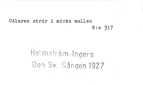 //// Odlaren strör i mörka mullen //// N:o 317 //// Ho' rnström Ingers 1-.)eir.3 Sv. Sången 192 7 ////
