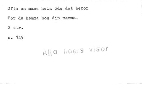 //// Ofta en mans hela öde det beror //// Bor du hemma hos din mamma. //// 2 str. s. 149 //// g,I1Q V t S or ////