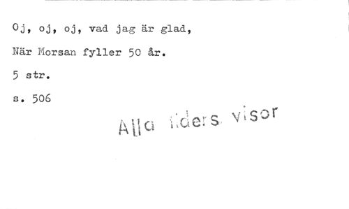 //// Oj, oj, oj vad j är glad, //// När Morsan fylle 50 äx 5 s tr. //// 2. 506 //// v'isor ////