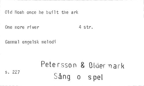 //// Old Noah once he built the ark //// One more river 4 str. //// Gammal engelsk melodi //// Petersson g aber narig //// s. 227 Sång o spel ////
