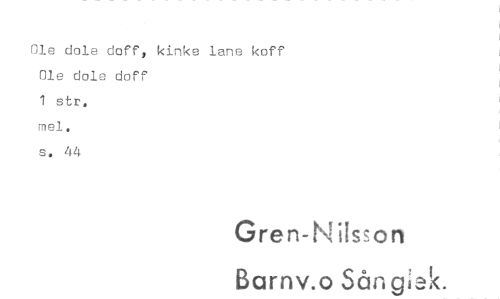 //// Ole dole doffp kinke lane koff //// Ole dole doft //// 1 str. //// mel. //// s. 44 //// Gren-Nilsson Barnv.o Sån gå ////