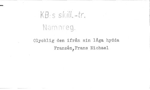 //// KB:s skilt-tr. //// Km:Ireg. //// Olycklig den ifrån sin låga hydda Franzån Frans Michael ////