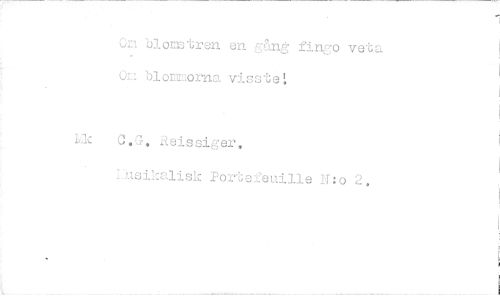 //// On blomstren en gång finro veta On blommorna vi-gste! //// Lic C,G. Reissiger, //// :usiktdisk Portefeuille IT:o 2, ////